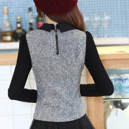 正品现货 小曾家love 2014秋季新款韩版修身假两件套修身长袖欧根纱女连衣裙送原版项链