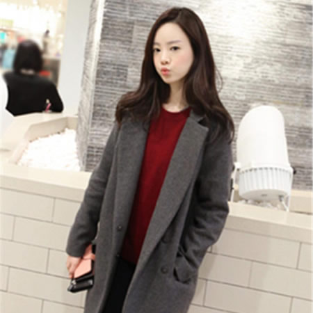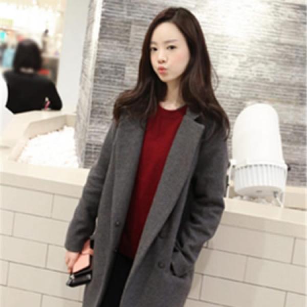 花漾小店 高品质主打爆款韩国2014秋冬修身中长款毛呢外套