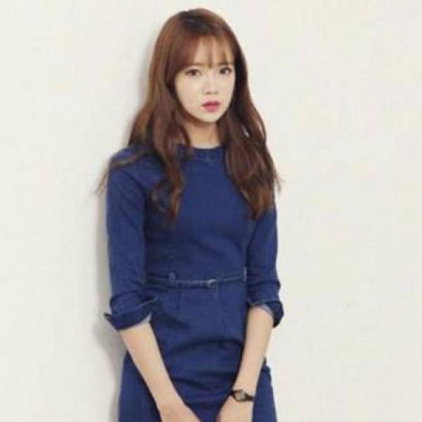 2014 秋季新款韩版女装复古中袖圆领显瘦修身水洗五分袖牛仔裙连衣裙