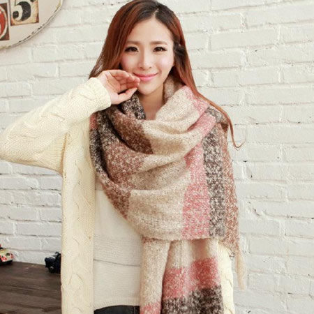 大牌奢华名媛气质拼色格纹斗篷式披风围巾