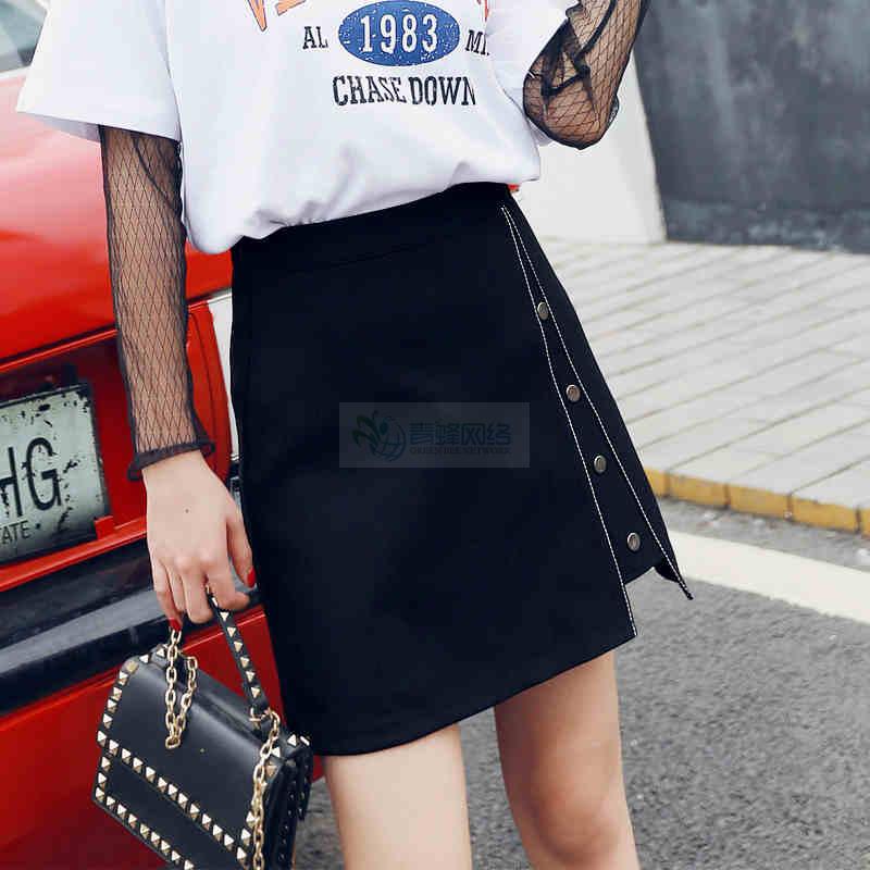 2018春夏季新款黑色半身裙a字裙高腰显瘦不规则包臀裙半裙女...