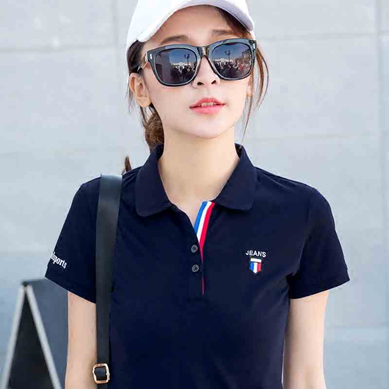 夏季翻领运动T恤女士大码纯棉短袖女2018新款上衣宽松体恤p...